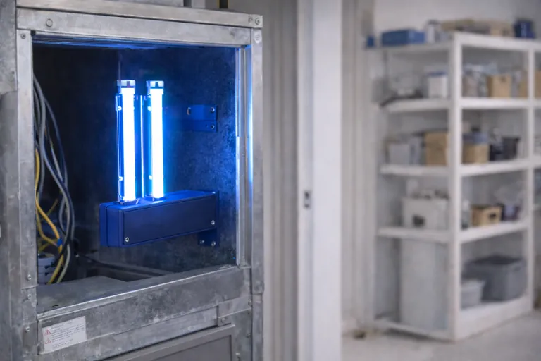 We install two UV light setups: coil sterilization lights that shine on the evaporator coil around the clock to prevent mold and bacteria, and air sterilization lights in the ducts to treat air as it passes through. Both are low-maintenance, energy-efficient, and work quietly with your HVAC system. UV bulbs last about 1-2 years and are simple to swap out during regular maintenance.